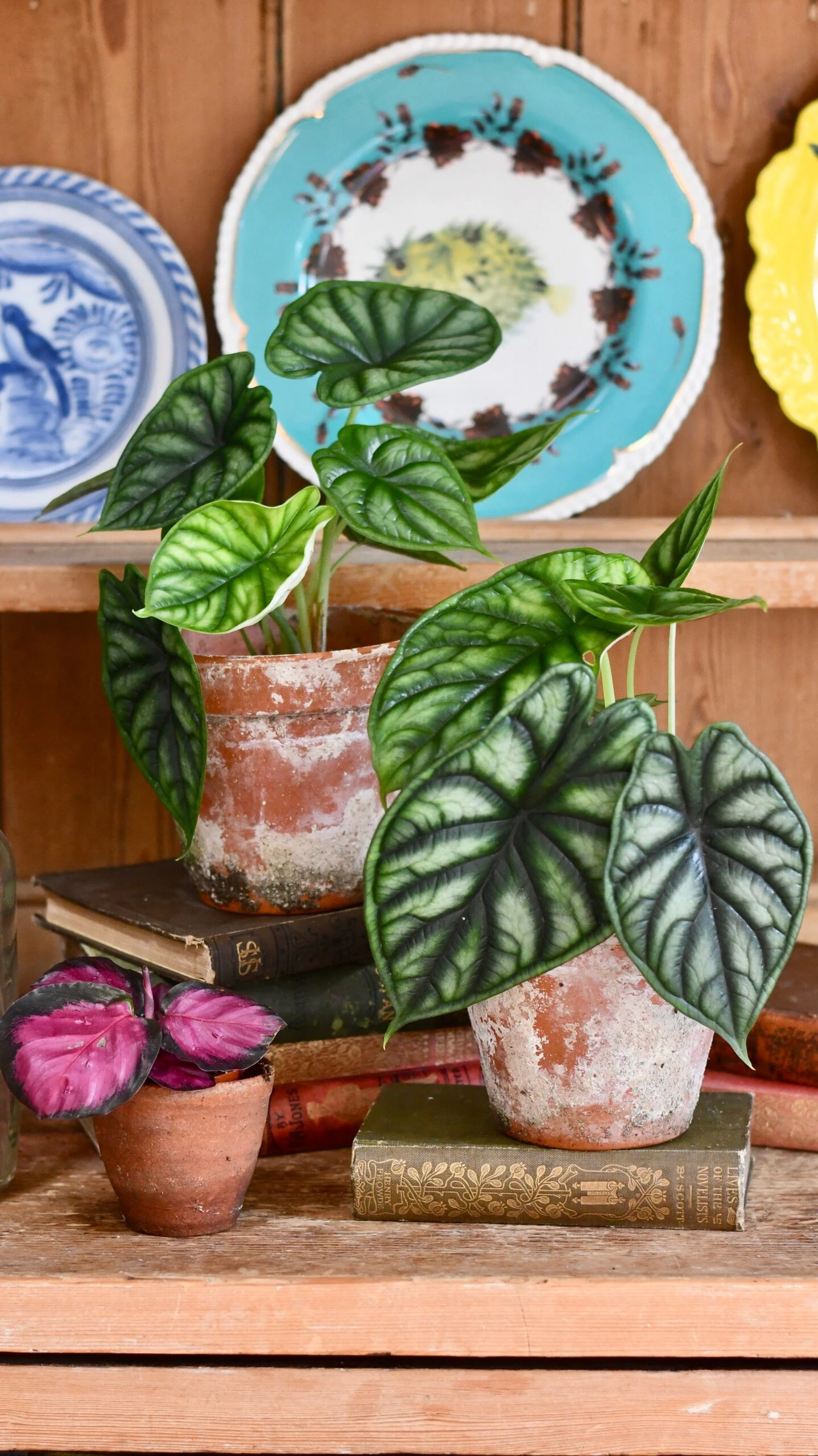 Fabulous in a terracotta pot on top of a dresser, the Dragon scale plant has silvery leaves with dark green, deep veins running through it – and under the leaf is pale silvery-white with burgundy veins. This interesting houseplant really catches the eye with its stunning looks.