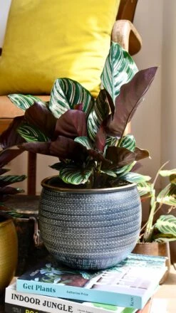 Fabulous in a terracotta pot on top of a dresser, the Dragon scale plant has silvery leaves with dark green, deep veins running through it – and under the leaf is pale silvery-white with burgundy veins. This interesting houseplant really catches the eye with its stunning looks.