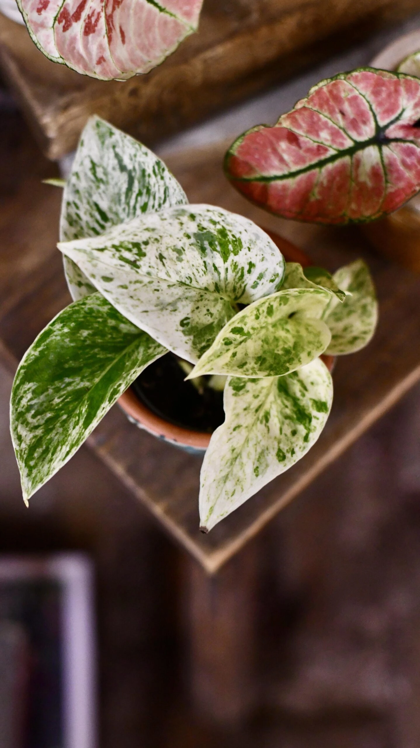 This is too cute, a baby Marble Queen! We love the stunning foliage of this wonderful houseplant. Very easy care and happy in almost any light, it makes the ideal easy-care houseplants for beginners and experts.Â
