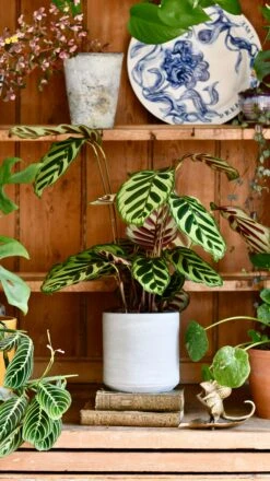 Styling-wise, Calathea makoyana is a superb addition to any indoor space, infusing a unique and tropical touch. Its large, glossy leaves make it an excellent choice for adding texture and greenery to your home or office. Consider showcasing it in a decorative pot or hanging basket to highlight its elegant growth habit. It also pairs beautifully with other tropical plants, creating a vibrant, lush display.