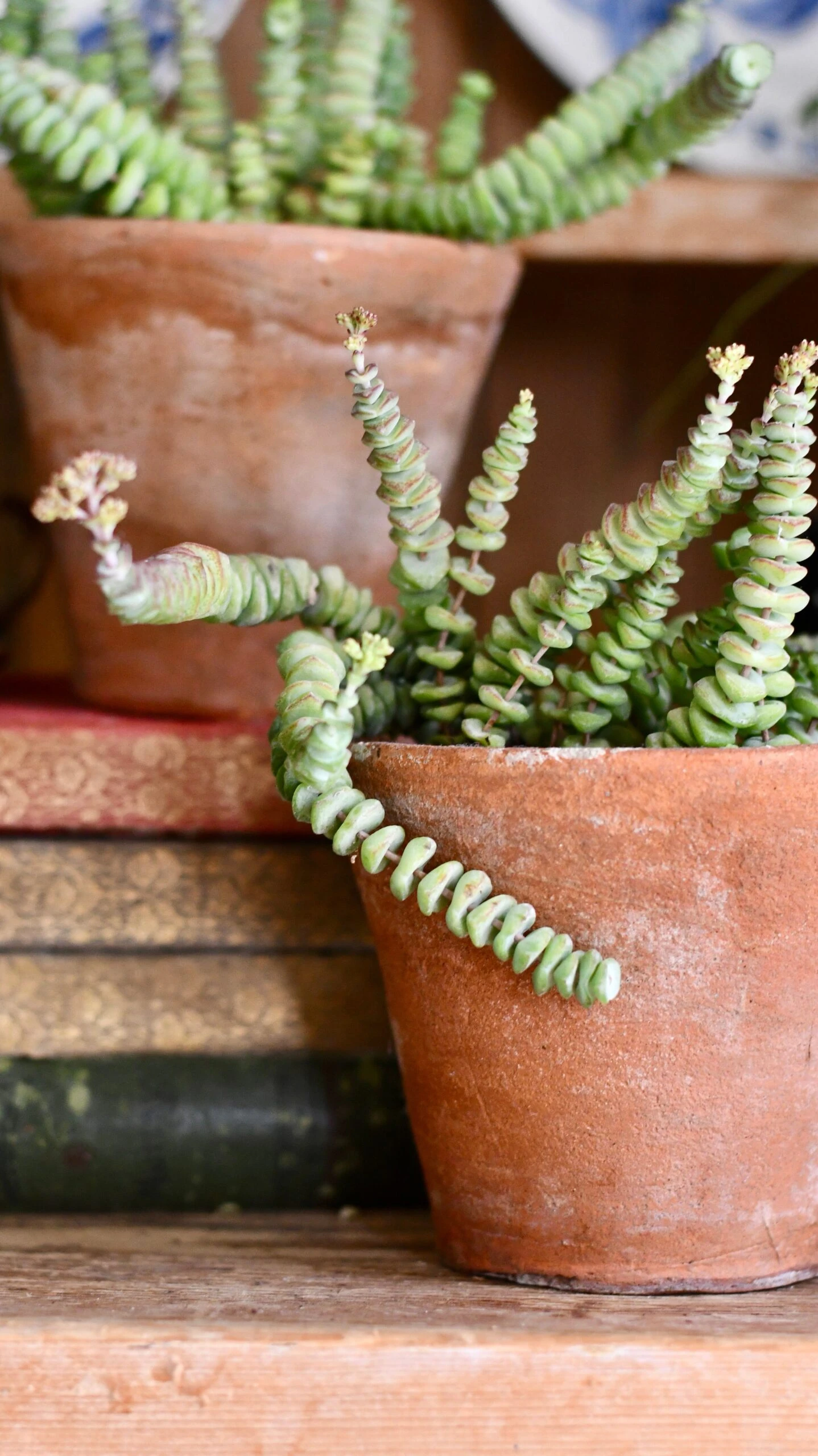 We love the amazing looks of the Jade necklace vine! It’s got so much individuality and makes a great addition to any houseplant collection! The Jade necklace vine or Crassula Hottentot is a unusual, trailing variety of crassula. As it grows tall, it begins to spill over, making a great hanging plant which has small, star-shaped flowers in the winter.Â