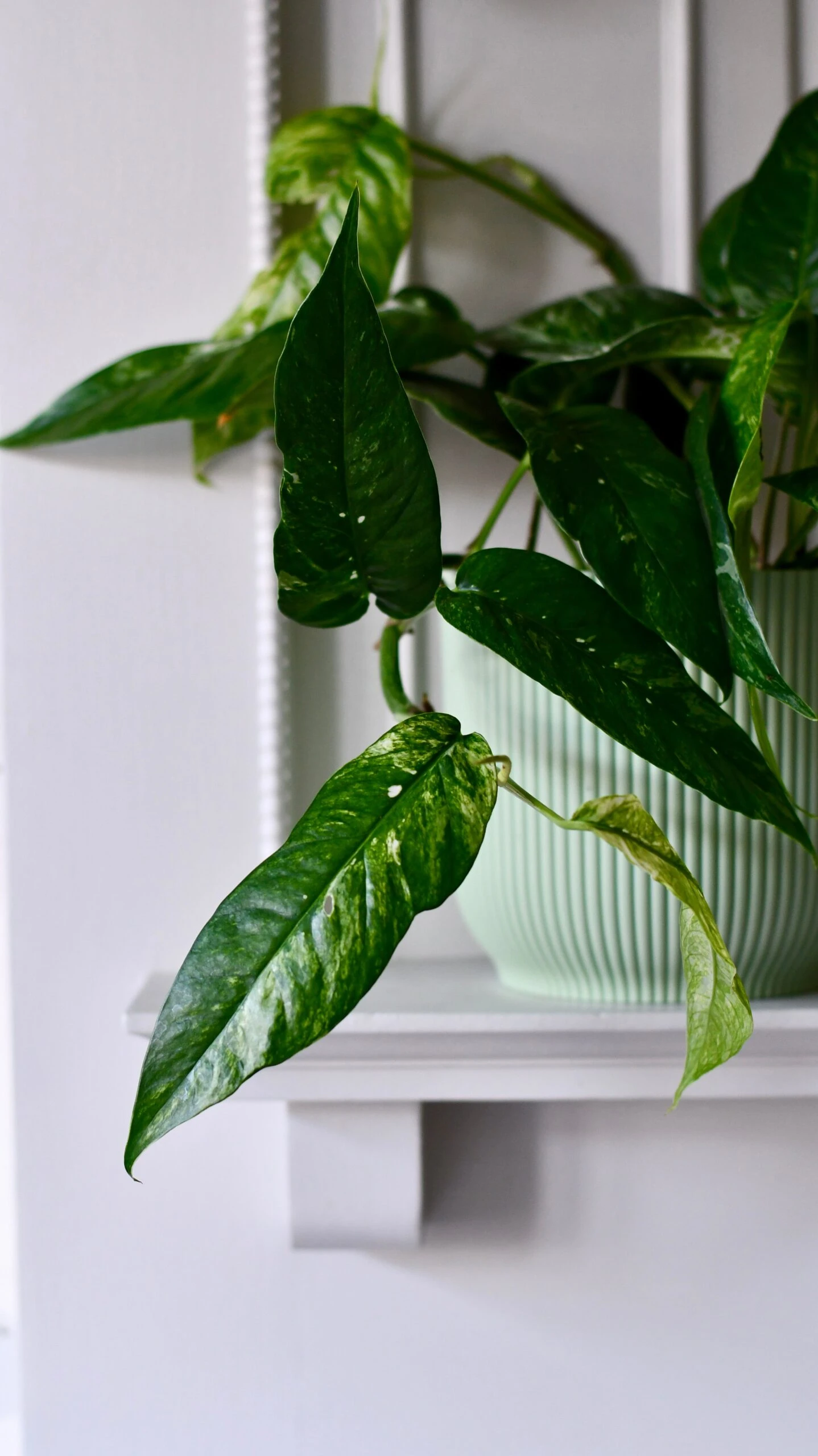 Epipremnum Pinnatum Variegated  has stable variegated leaves, unlike the monstera albo its ideal for hanging baskets and planters due to its delicate shaped leaves.Â
