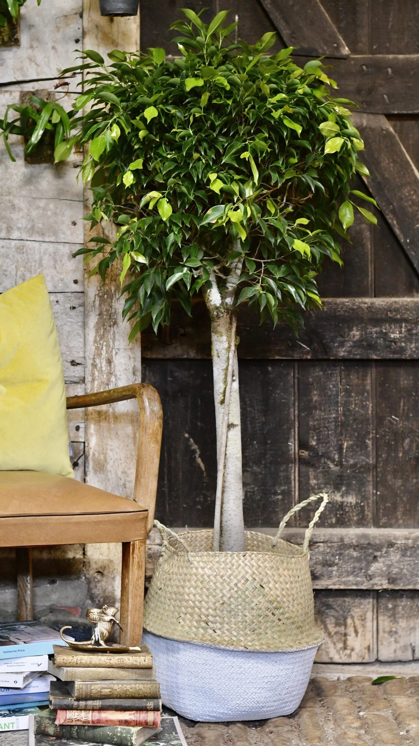 We’re huge fans of the Weeping Fig – it’s got pots of personality! The Ficus Benjamina or as it’s more commonly known, the Weeping Fig, is a beautiful, large indoor houseplant that’s is easy to care for in the right spot, bright light is essential but otherwise is very simple to look after and it gets more and more beautiful as it grows and wilds naturally into any space. A real show-stopper.Â