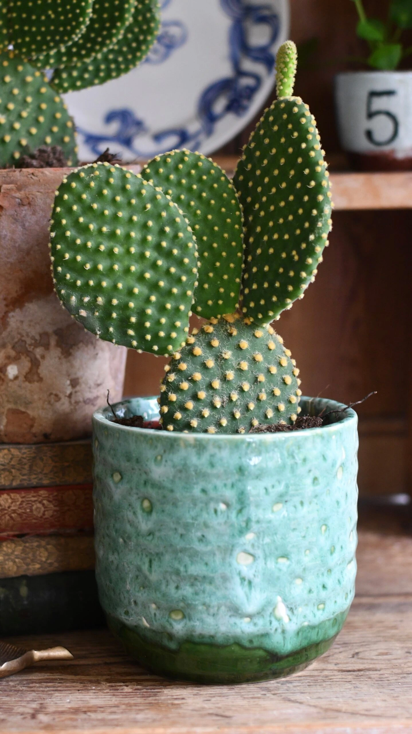 The Opuntia Microdasys Pallida is low-maintenance and an excellent choice for anyone new to growing houseplants. This plant will thrive as long as it’s water only when it’s completely dry and kept in a warm and sunny spot.Â