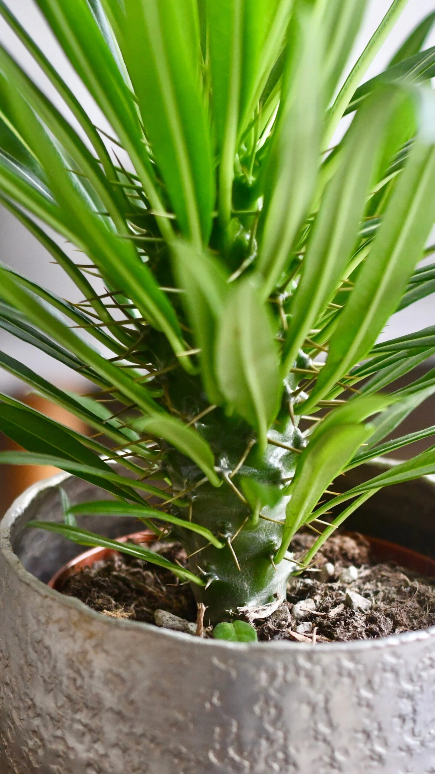 We love this statuesque palm, it’s a great focal point in a room and a really stunning houseplant! Madagascar Palm is a fascinating houseplant, its trunk expands with water which helps it survive in really hot, dry climates. The name ‘Pachypodium’ means ‘thick foot’ because of its water-storing capabilities.