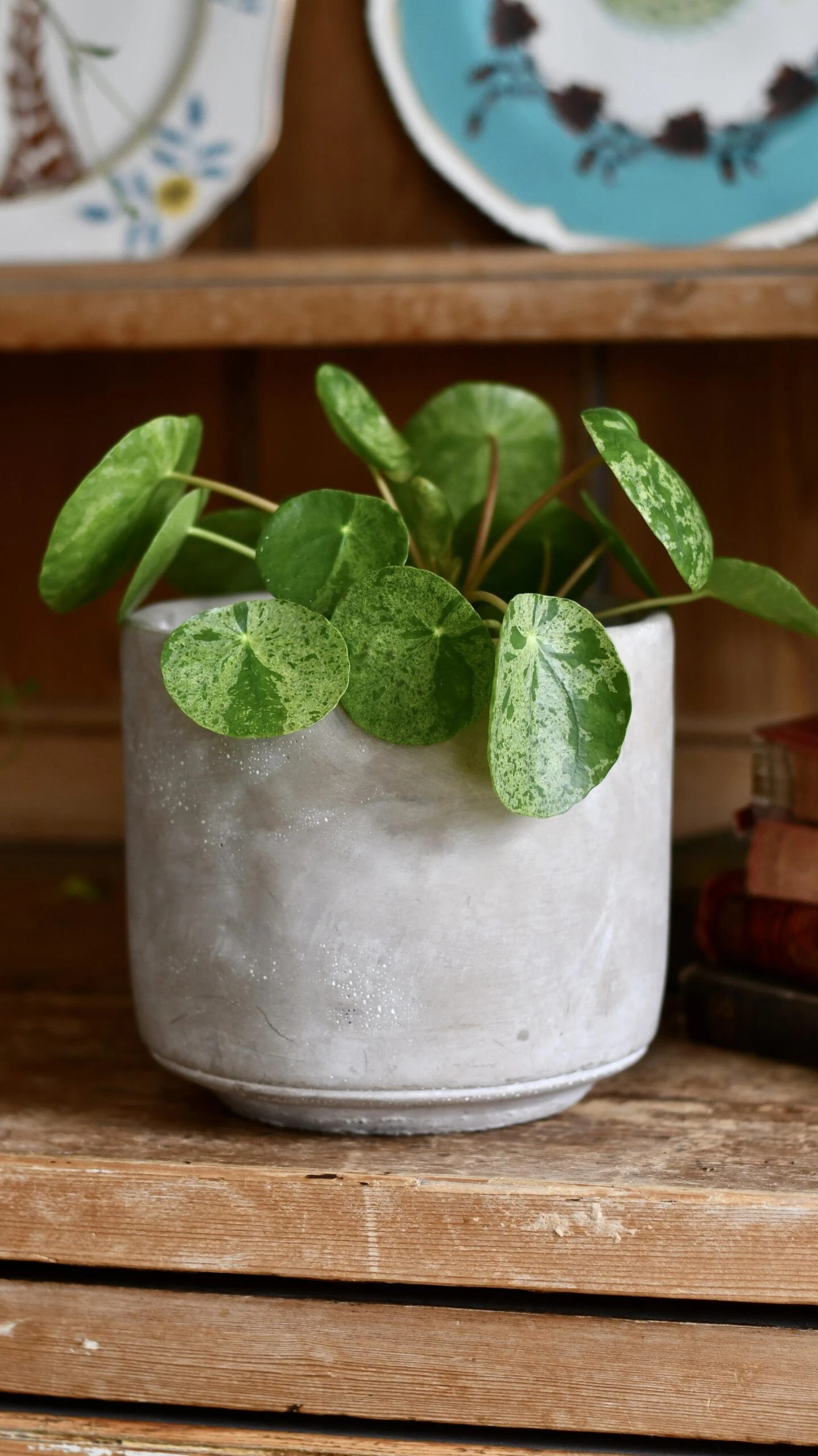 You don’t often see Variegated Pilea Peperomioides for sale or on display but it’s a real gem and another rare plant from China, a country full of unusual plants.Pilea Peperomioides resembles large pennywort with tall stems with round leaves grows. The mother plant produces small plants regularly that can be easily propagated.Â