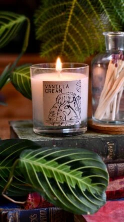 Vanilla plants are climbing orchid vines that produce a pod that looks like a string bean. The vanilla orchid flowers are white, tinged with green and have a delicate and remarkable fragrance. Our Vanilla Cream candle is a delicious aroma reminiscent of creamy jasmine and grape, a deep and warm fragrance invoking the atmosphere of luxury. This classic favourite scent will flow throughout your home and is Ideal for everyday use or special occasions.Â