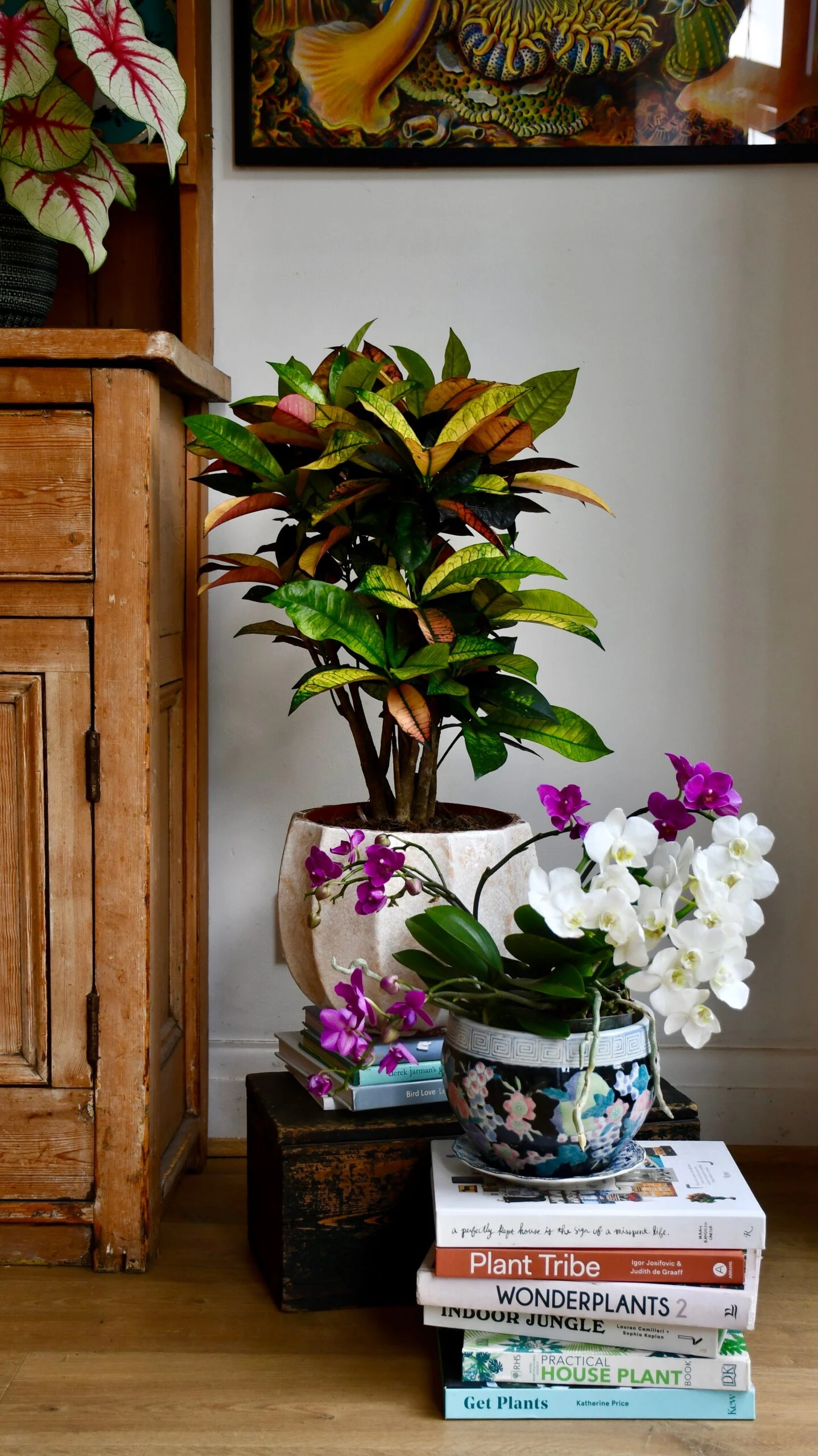Codiaeum Mrs Iceton shouts âtropicalâ to anyone looking at it with its explosion of colourful foliage reaching up towards the light. Although itâs a tall houseplant it doesnât actually take up a lot of space with its slim form. Â
