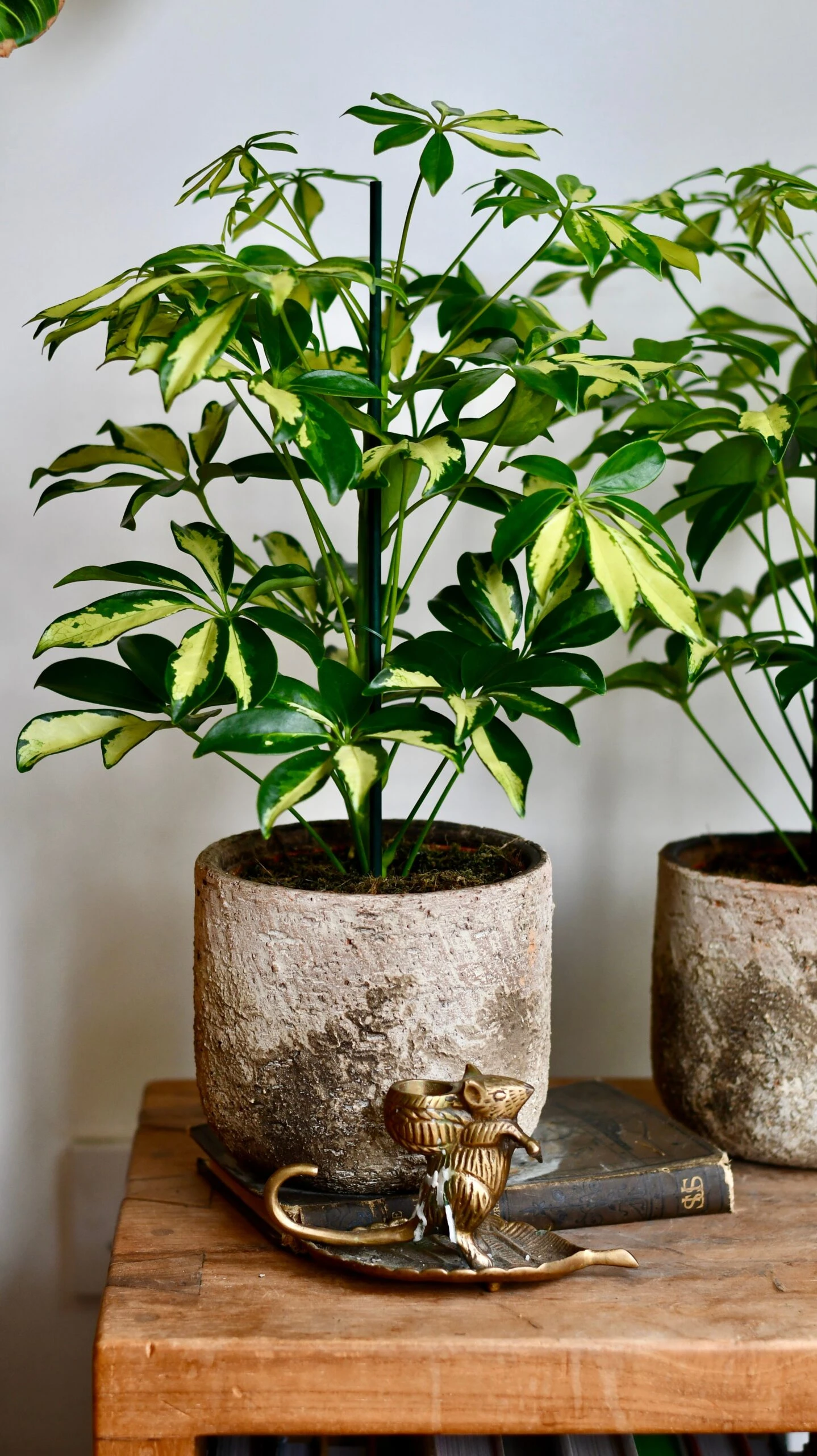 Styling: Schefflera Gold Capella is a versatile plant that can be styled in a variety of ways. Its bright and bold variegated leaves make it a striking addition to any space. The plant can be grown as a small bush or trained to grow as a taller tree. To style the plant, prune it regularly to maintain its shape and promote new growth. If you wish to grow the plant into a tree shape, prune the lower branches and allow the upper branches to grow taller. The plant can also be trained with wires to shape it into various forms, such as a braided trunk or spiral shape.
