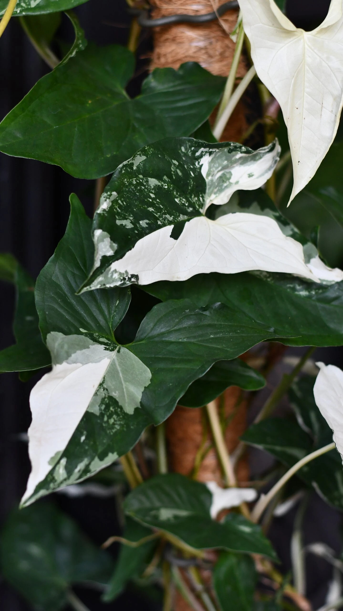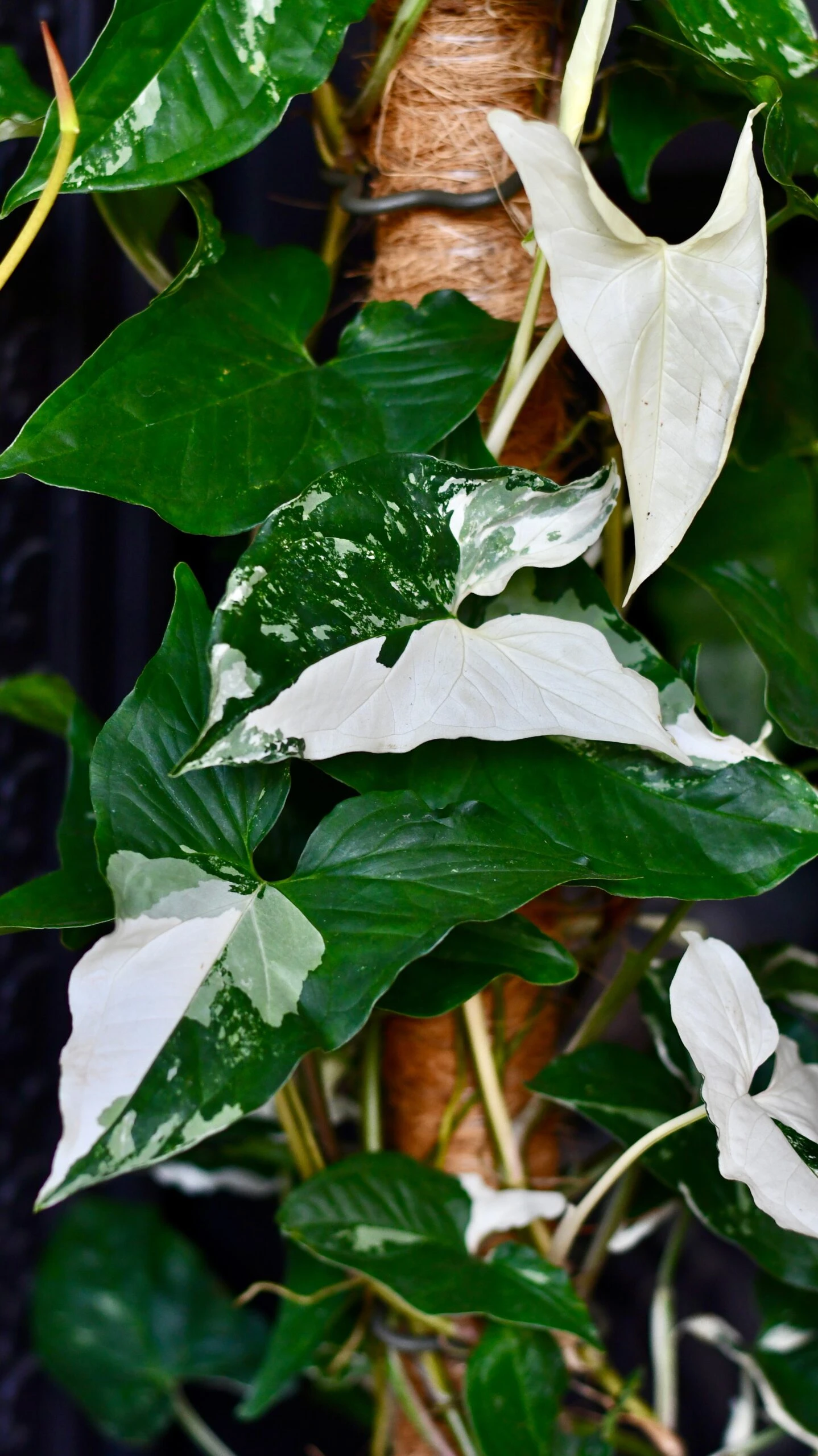 The heavily variegated Syngonium Podophyllum is an absolutely stunning easy-care plant. We are selling large well-established plants growing well— limited stock of these larger plants.