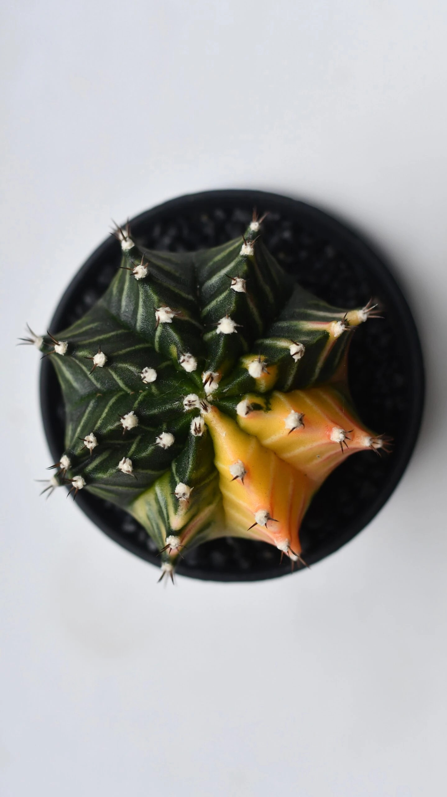 Where should I place the Variegated Gymnocalycium? The Variegated Gymnocalycium thrives in bright, indirect light. Position it near a sunny window or in a well-lit room. Protect it from intense, direct sunlight to prevent leaf burn.