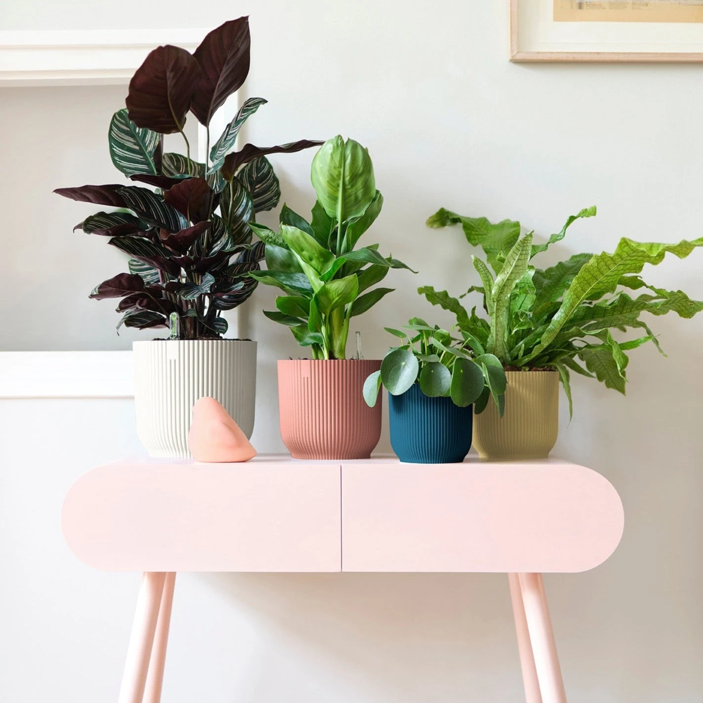 The new indoor vibes family fits perfectly into the vibes of a cosy, harmonious, fashionable, friendly interior. The pots will bring out the best in your indoor plants with their slightly rounded body, soft tones and decorative pattern.